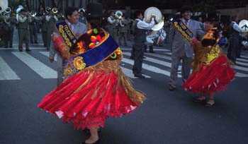 ![]() Comunidad boliviana “invadió” la ciudadEl sábado 17 de octubre integrantes de las Fraternidades bolivianas llenaron el centro porteño de ritmo y color. Marcharon por la diagonal sur y Avenida de Mayo, luciendo sus trajes multicolores. Fue una fiesta llena de color, era sorprendente ver esas enormes columnas de mujeres de diversas las edades, vestidas todas igual, danzando y girando con una sincronización perfecta, al ritmo de las bandas de caballeros prolijamente vestidos de traje y corbata, al igual que las damas, todos similares. Por momentos parecía que estábamos observando el paso de una comparsa en el carnaval de Río, el colorido era impresionante, del mismo modo el trabajo de confección de los trajes. Otra de las cosas a destacar fue el comportamiento del público presente, en su gran mayoría de la comunidad boliviana residente en nuestro país, respetando las ubicaciones asignadas, sin invadir el espacio por donde circulaban las agrupaciones y facilitando el trabajo de la prensa que cubría el evento. El evento estuvo organizado por el Ministerio de Cultura de la Ciudad de Buenos Aires y la Asociación de conjuntos folklóricos de residentes bolivianos. Según los organizadores de "Integración Cultural de Bolivia en Buenos Aires", desfilaron más de cinco mil bailarines y según pudimos apreciar, tanto la diagonal Julio Argentino Roca, como la Avenida de Mayo estaban colmadas de espectadores. Una hermosa fiestas de la comunidad boliviana que esperamos que se repita, para que los porteños también puedan disfrutar de tan colorido evento cultural.