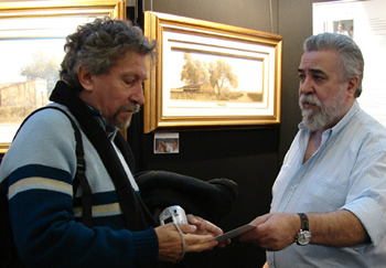 Visitamos el stand que Juan Carlos Pallarols compartía con el artista plástico Jorge Frasca, que exponía sus bonitas pinturas, inspiradas en motivos gauchescos y nos recibió muy amablemente. Maestro del paisaje, pintor del aire y de la luz, es un autodidacta, dueño de un estilo y referente absoluto en Argentina de una corriente pictórica.