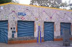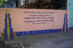 - Por favor, contame de qué se trata la obra que estás haciendo en el pasaje Discépolo. - La CADMIRA, que es la Cámara de Comerciantes de Once, me eligió para que haga un trabajo sobre las paredes de la parte de atrás de la Escuela 9, la Sarmiento, eso está sobre lo que antiguamente era el pasaje Rauch, que va desde Callao y Lavalle hasta Corrientes y Riobamba, ahí tomé como lo vengo haciendo últimamente y con mucha más razón en este caso, una partitura de tango textual, en esta oportunidad "Uno" de Discépolo y Mariano Mores, o sea que aspiro a que a la fecha de inauguración del trabajo que estimo será a fines de Marzo, pueda estar (Mariano) Mores ejecutándolo. Está terminada la primera etapa, toda hecha en azulejo, en mosaico y en cerámico, junto con una parte en pintura, terminada, esa parte que queda en pintura que es de unos treinta metros lineales por ochenta centímetros de alto la quiero hacer en mosaico veneciano y cerámica trencadis, así se llama la técnica, porque entonces ya sería la primera obra donde es totalmente cerámico con lo cual estará mucho más consolidada en el lugar. Como siempre tomo parte de la vereda, entonces hago una alegoría sobre "La Porteña" que fue la primera máquina del ferrocarril que circuló por ahí, haciendo todo un recorrido de ejes y ruedas de "La Porteña" y esos ejes y ruedas van a ir hacia la parte superior del edificio y hacia la calle, tomando todos los canteros de los árboles, que son circulares, de ese modo logro hacer eso que yo siempre trato, que la obra no sea un mural, sino una intervención urbana, que se expanda, que tome el espacio público, no que sea un cuadro grande o una alegoría solamente para mirar, sino que uno tenga participación en ese espacio de la obra. - ¿La partitura será algo similar al Pasaje Zelaya? - Sí, es el tango textual, solamente que aquí las imágenes son alegorías a todos los íconos del barrio, incluído el Teatro Abierto y El Picadero, que los tengo enfrente de esta obra. - Vemos que con el tiempo vas dejando tu huella en muchos barrios porteños. - Yo creo que más que copar los barrios voy a tener mi mapa propio, por ahí con esta obra y otra que voy a colocar en el bar El Hipopótamo, donde voy a poner uno de la serigrafía de "Los Gardeles", también incluyo a San Telmo en este mapa propio que estoy haciendo. - Sí, porque te tenían muy identificado con el Pasaje Lanín y luego con el Pasaje Zelaya. - En La Boca hice, sobre Del Valle Iberlucea, una cuadra entera en conmemoración del centenario del Club Boca Juniors. Nos despedimos de Marino, agradeciendo su habitual cordialidad y pensando que lindo es que los artistas dejen plasmadas sus obras en las fachadas de casas de los distintos barrios de la ciudad, para embellecerlos y que todos los que por allí circulan puedan disfrutarlas, convirtiéndolos en galerías al aire libre.
