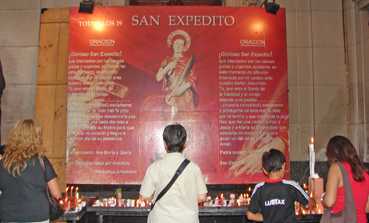 ![]() San Expedito, a 1075 años de su muerteGran cantidad de fieles hizo largas colas en la iglesia Nuestra Señora de Balvanera, considerado el mayor santuario del patrono de las causas justas y urgentes. También hubo una multitudinaria procesión por el barrio vecino.El sábado 19 de abril, miles de fieles se congregaron en las calles adyacentes al templo ubicado en la esquina de Bartolomé Mitre y Azcuénaga. Las actividades comenzaron a la medianoche y se extendieron hasta las 17 con una procesión por las calles del barrio llevando la imagen del santo. El sacerdote Fabrizio Maranzana, responsable del santuario, declaró a la agencia Télam que los fieles fueron a pedirle a Dios, por intermedio del santo, solución o respuesta inmediata a los problemas que los acucian, e indicó: "Esto no es un síntoma de la inmediatez que caracteriza a la sociedad de consumo, sino al ritmo al que se vive en las grandes ciudades". Destacó que "San Expedito es reconocido por el don que nuestro Padre misericordioso le dio para resolver necesidades urgentes". San Expedito fue militar del Imperio Romano y tuvo a su cargo a miles de hombres. Junto con otros soldados se convirtió al cristianismo. Se cuenta que fue tentado por el diablo, con forma de cuervo, al que Expedito aplastó. Luego fue flagelado y decapitado el 19 de abril del año 303, por orden del emperador Diocleciano en Melitene, sede de una de las provincias romanas en Armenia. La devoción a San Expedito se extendió por el mundo como intercesor ante Dios para atender los casos urgentes. El santo es también patrono protector de los jóvenes, socorro de los estudiantes y de los enfermos, mediador en los procesos y juicios, en los problemas de familia, laborales y de negocios, además de ser invocado por otras cuestiones acuciantes.