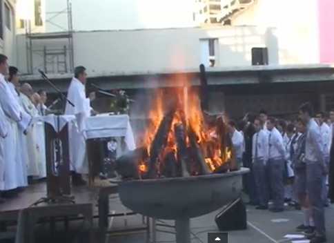 La eucaristía fue concelebrada por los padres inspectores Honorio Caucamán y Manuel Cayo, y por un grupo de salesianos sacerdotes de diferentes regiones del país. Se inició la santa misa encendiendo los leños que cada batallón llevó, como signo de su presencia, como también el fogón, la tradición de todo campamento.